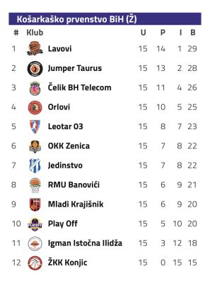 Nakon 15 odigranih kola naše košarkašice imaju učinak 14-1 i sa ukupno 29 osvojenih bodova drže lidersku poziciju u šampionatu Bosne i Hercegovine. Narednog vikenda, tačnije u subotu, 7. februara, slijedi gostovanje u Istočnom Sarajevu i duel protiv domaćeg Igmana.